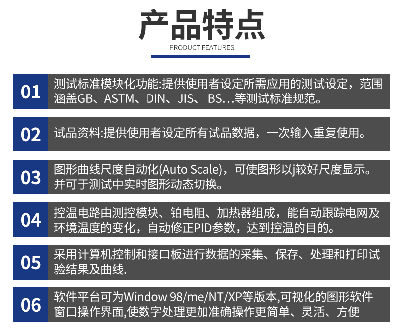 技術(shù)參數(shù):型 號 KST-6001A 測控溫范圍 常溫~200℃ 測溫顯示分辨率 0.01℃(普通型0.1℃ 采用進口溫控儀控溫) 測控溫精度 ±0.3℃ 標(biāo)定精度 ±0.5門尼值 轉(zhuǎn)子轉(zhuǎn)速 2轉(zhuǎn)/分±0.02轉(zhuǎn)/分 力矩量程 0~200門尼值 力矩分辨率 0.1個門尼值 打印內(nèi)容 日期、時間、溫度、門尼焦燒曲線、MV、T5、T35、T3、T18、@15、@30 電源 50HZ,~220V±10%